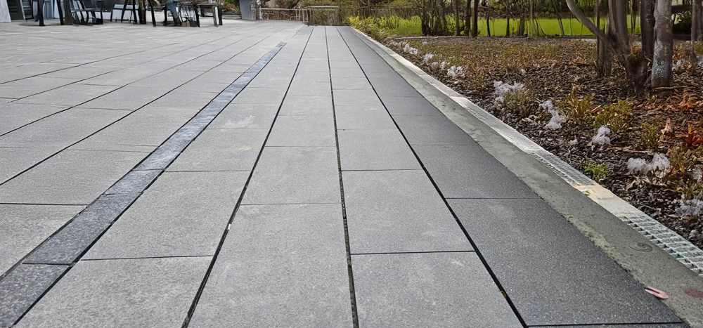 且比天然花崗石耐磨耗、抗壓、抗污、止滑效果高;適用於公共工程、開放空間、捷運、廣場、游泳池畔、科技廠辦、停車場等。