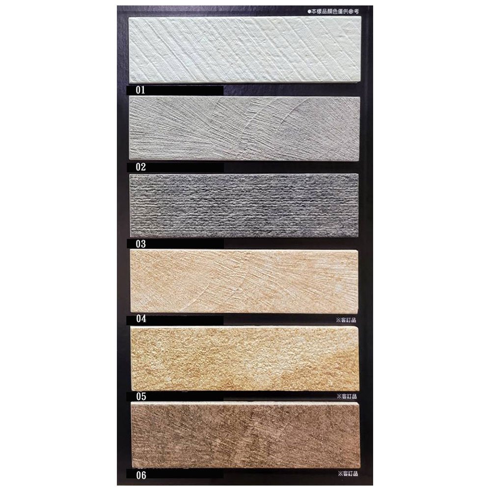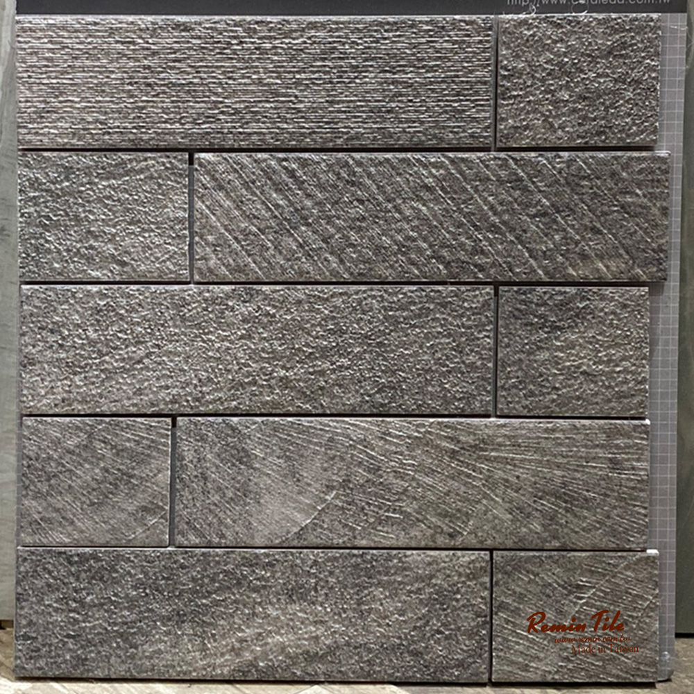 二丁掛-湛 石英磚材質,尺寸 6×22.7cm,白、灰、深灰為常備品,厚度 0.72cm,米、黃、棕量大可訂製 0.8cm,共 6 色。耐候性佳,適用於外牆、院牆及建築立面。台灣製造,質感細緻。