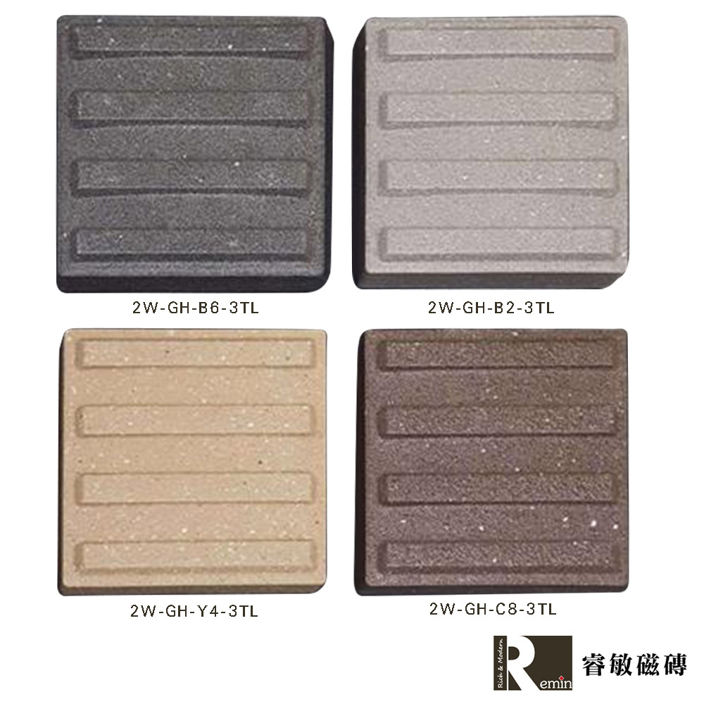 窯燒花崗石四紋車道磚,防滑耐磨、抗壓性佳,適用車道、廣場、庭院與景觀鋪面。灰、黑、黃色可選,尺寸10x10x2~2.3cm,台灣製造,耐用耐候。