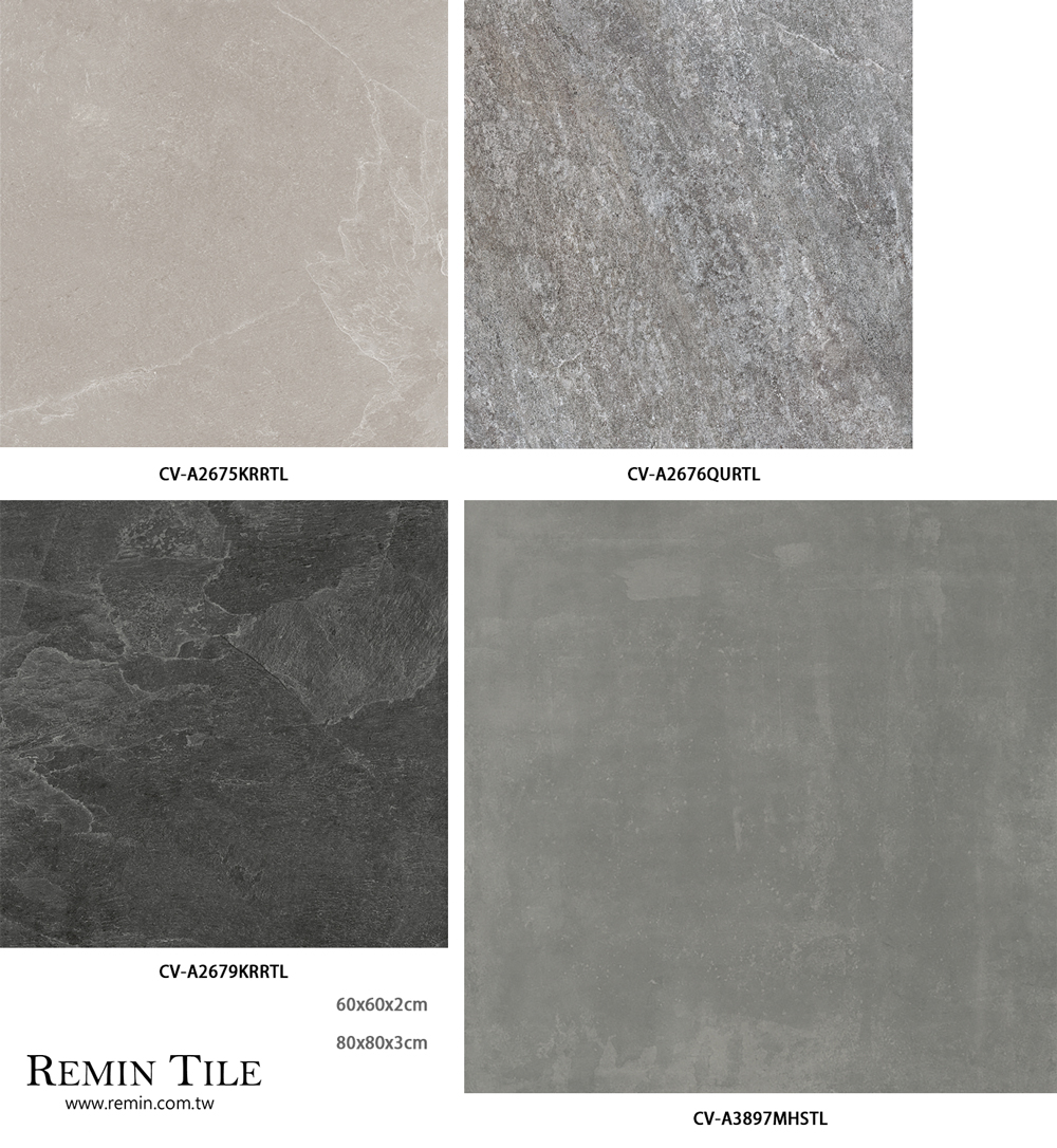 古威爾 板岩厚磚,60×60×2、80×80×3cm 尺寸,石英磚材質堅固耐重,具優異防滑與隔熱效果,適用屋頂露台與戶外地坪架高鋪設。