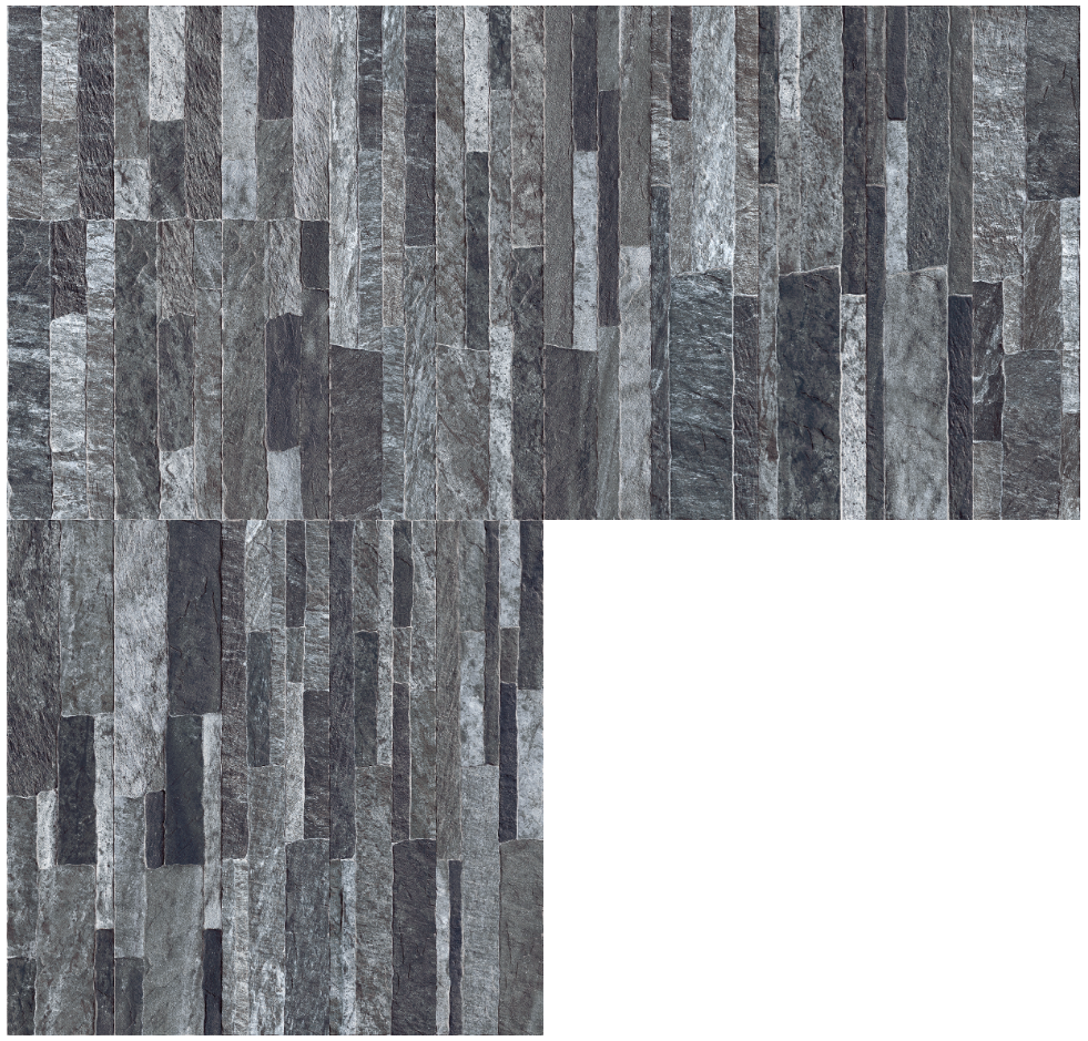 仿文化石基岩石系列,以 12.5×59.8cm 比例結合自然岩層堆疊紋理,呈現接近天然石材的粗獷層次與立面表情。石英磚材質讓整體應用更俐落易搭配,適合使用於住宅外牆、門廳立面、庭園壁面與商空空間,營造沉穩、自然且富有建築感的視覺效果。