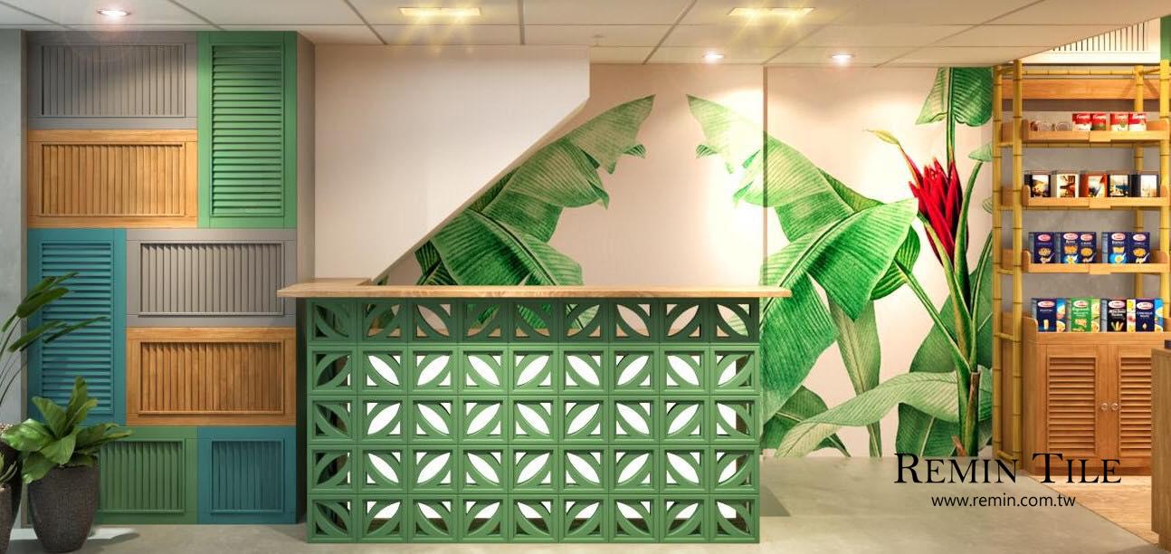 微風花格磚兼具通風、採光與遮蔽功能,適用於外牆、庭院、商業空間隔間設計。多色可選,含水泥灰、白、紅、綠、藍等,展現復古與現代感兼具的建築美學。