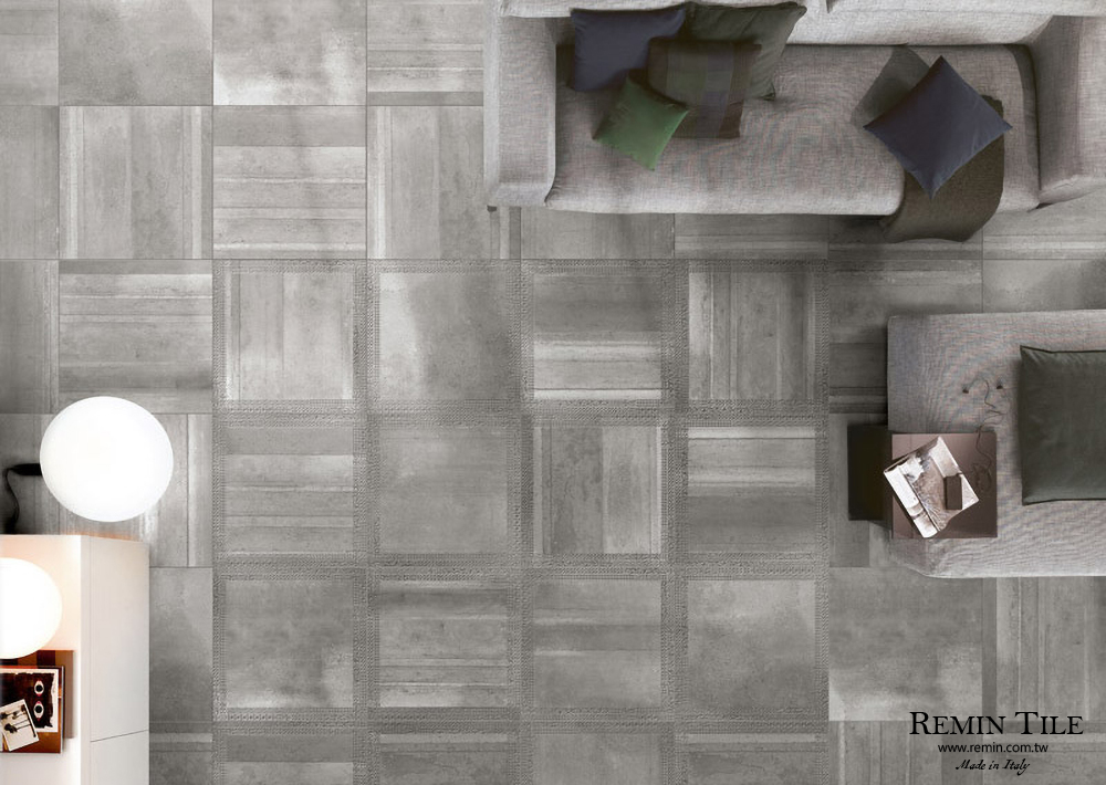 義大利進口金屬磚,60x60cm 與 45x90cm 規格,米色、棕色與灰色 3 款色系。適用於地板與牆面,展現工業風與現代感的完美結合。
